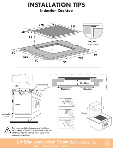 - L'entrée et la sortie d'air ne doivent pas être obstruées : Assurez-vous que la table de cuisson à induction est bien ventilée et que l'entrée et la sortie d'air ne sont pas obstruées. Il y a des trous de ventilation autour de l'extérieur de la table de cuisson. VOUS DEVEZ vous assurer que ces trous ne sont pas obstrués par le plan de travail lorsque vous mettez la table de cuisson en place.