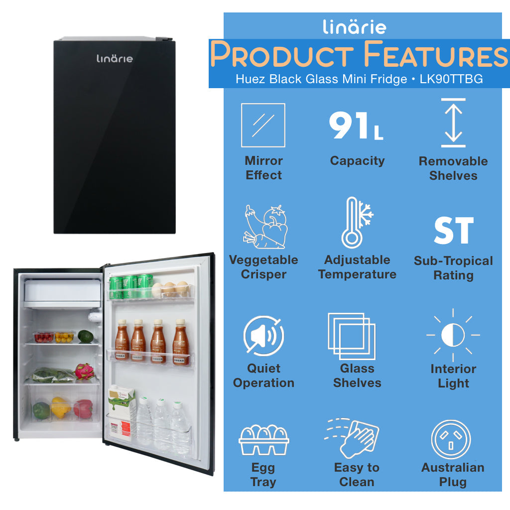 LINARIE | Mini réfrigérateur Huez 91L en verre noir avec compartiment congélateur intégré LK90TTBG