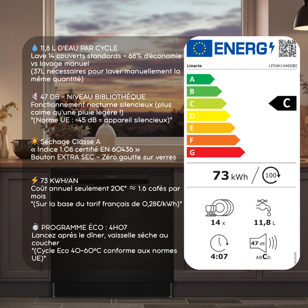 LINARIE | LAVE-VAISSELLE ENCASTRABLE ORMES LFDW1446DBI 14 COUVERTS 46DB